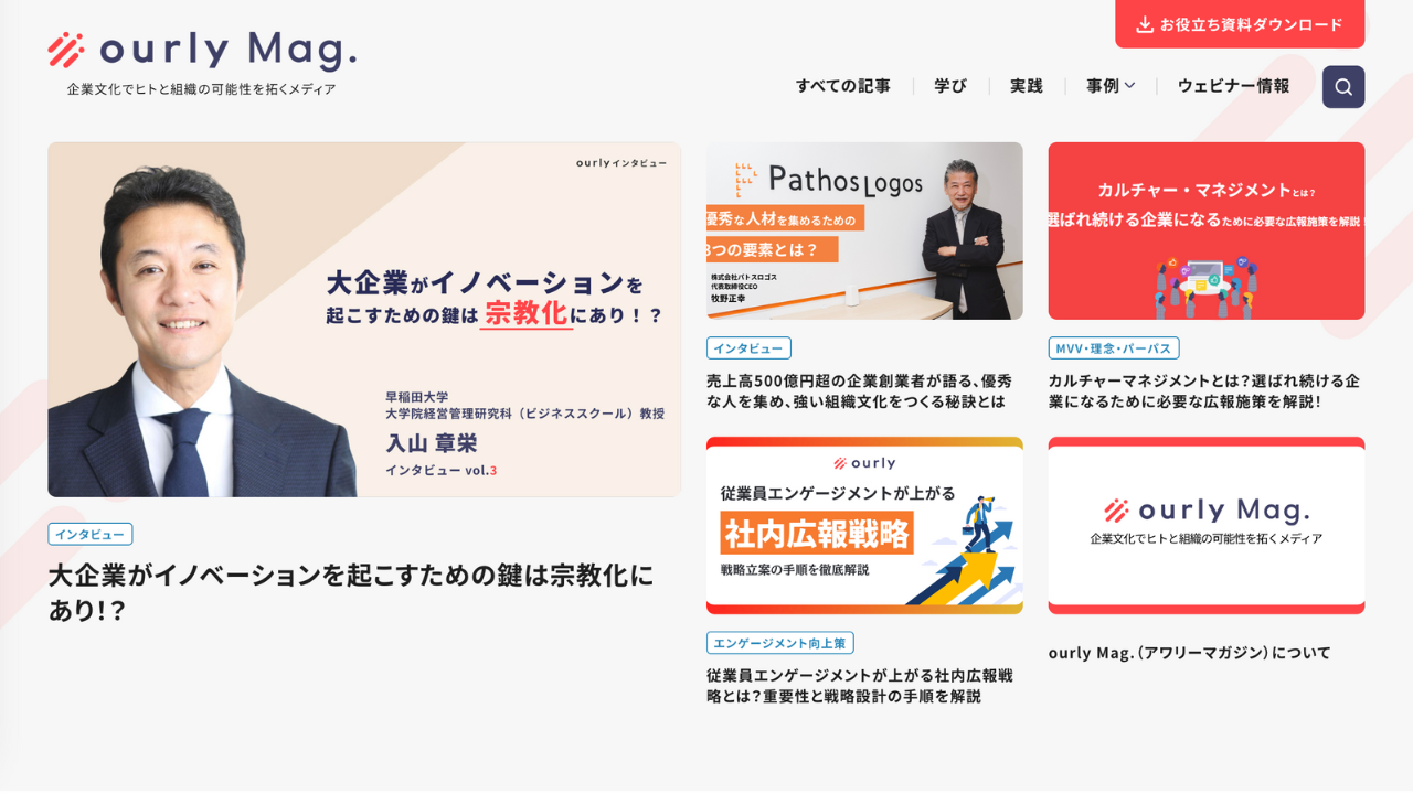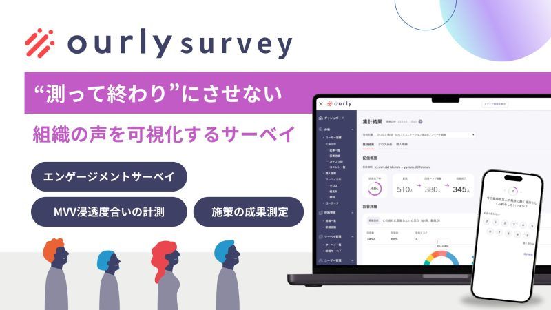 | 事業内容 | ・従業員サーベイ『ourly サーベイ』の開発/運用 ・社内報CMS『ourly 社内報』の開発/運用 ・相互理解ツール『ourly プロフィール』の開発/運用 ・インターナルコミュニケーションメディア『ourly Mag.』の運営 |